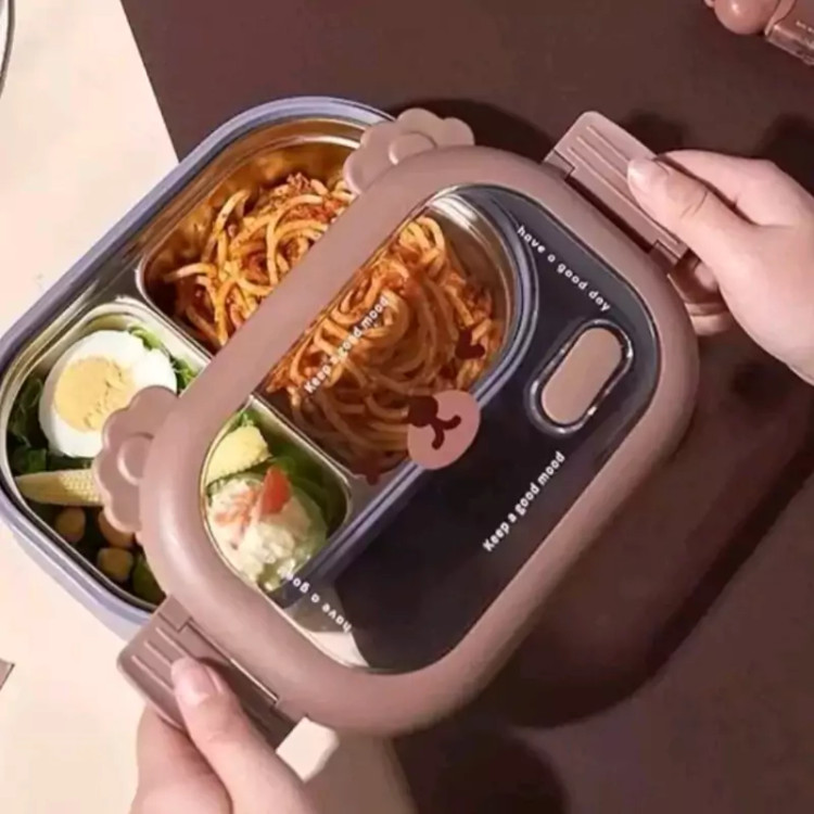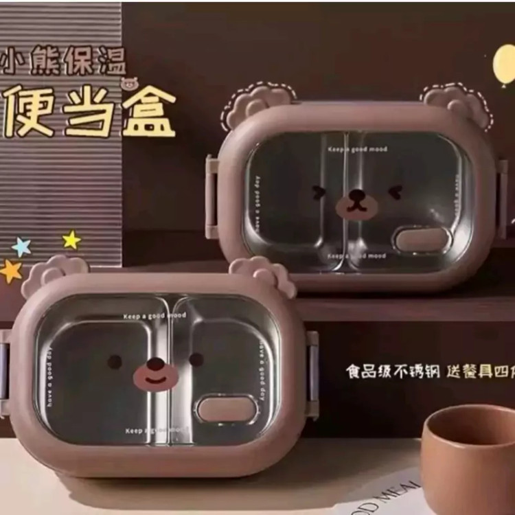 ظرف غذای کودک مدل خرسی گوش دار استیل 304ضدزنگ قسمت استیل جدامیشه وقابل استفاده درمایکروفراست دارای سوپاپ وواشر دور درب کیفیت عالی وارداتی